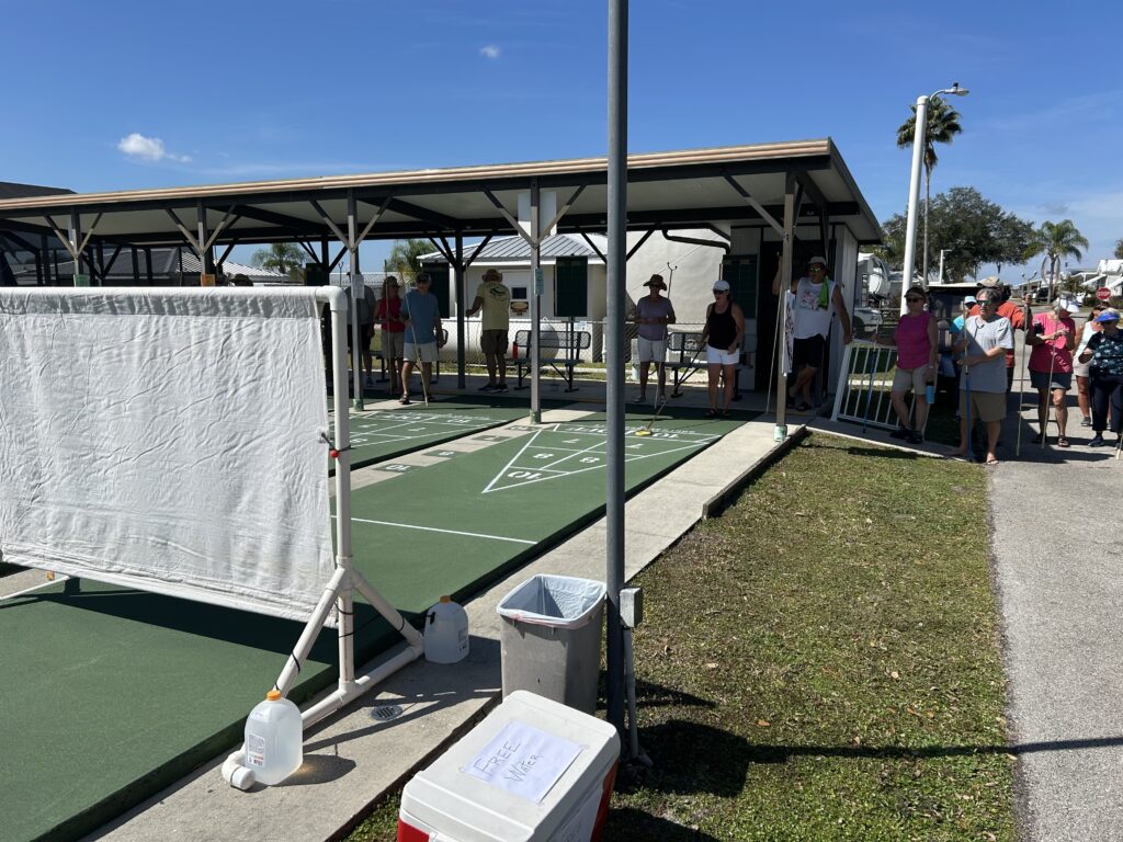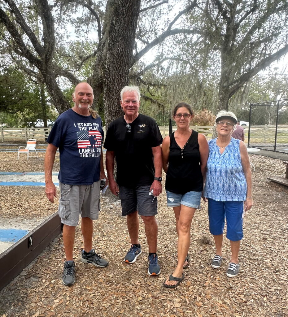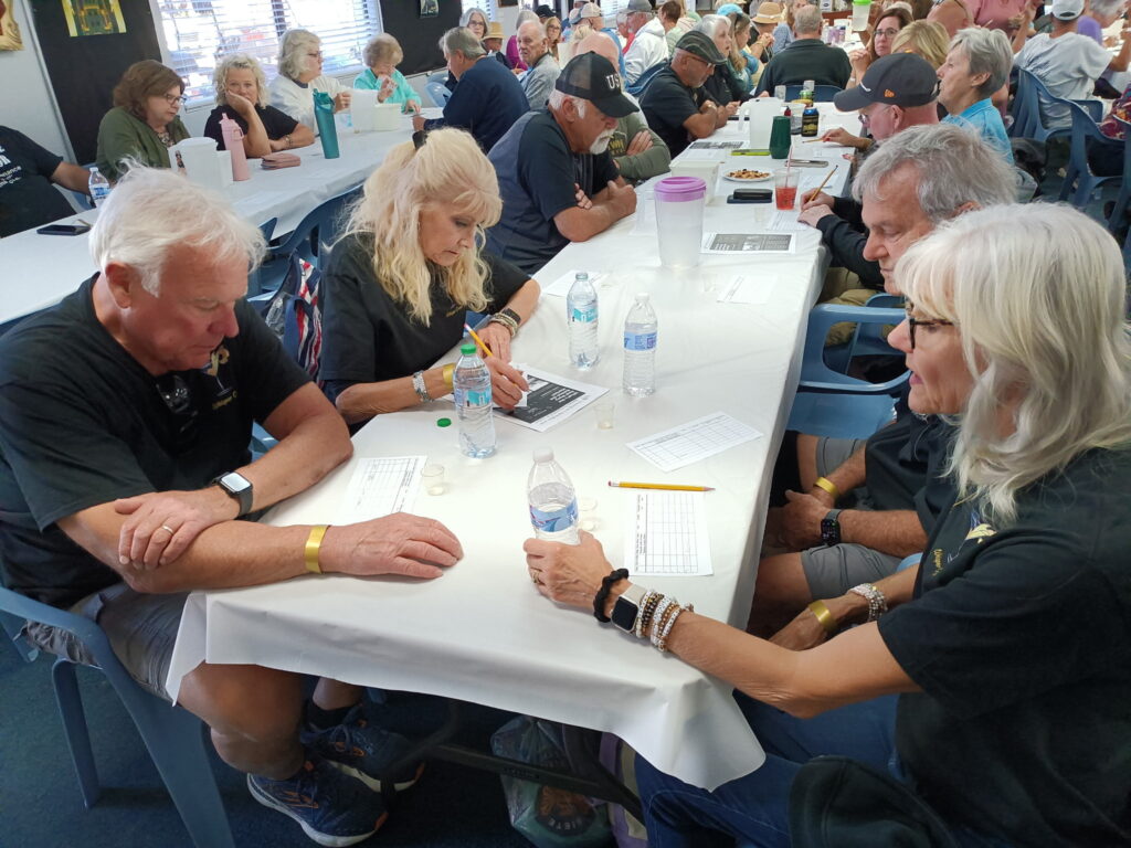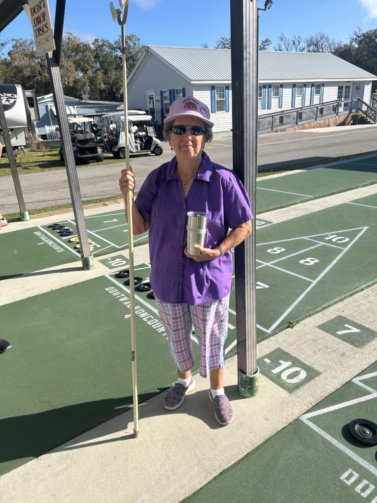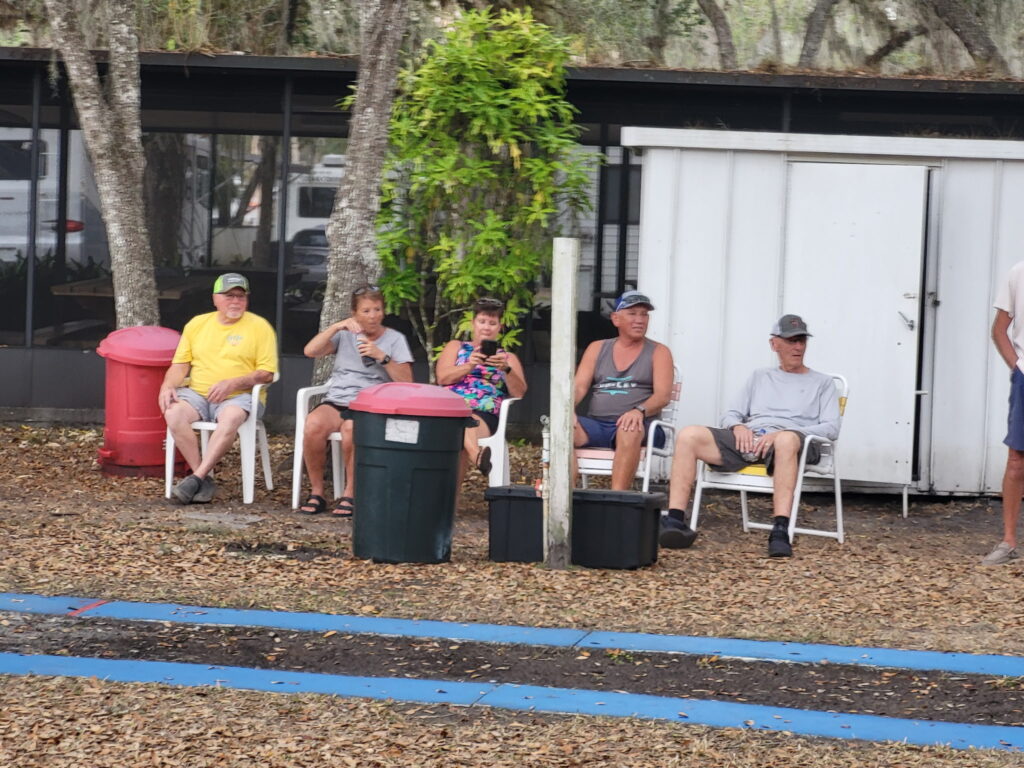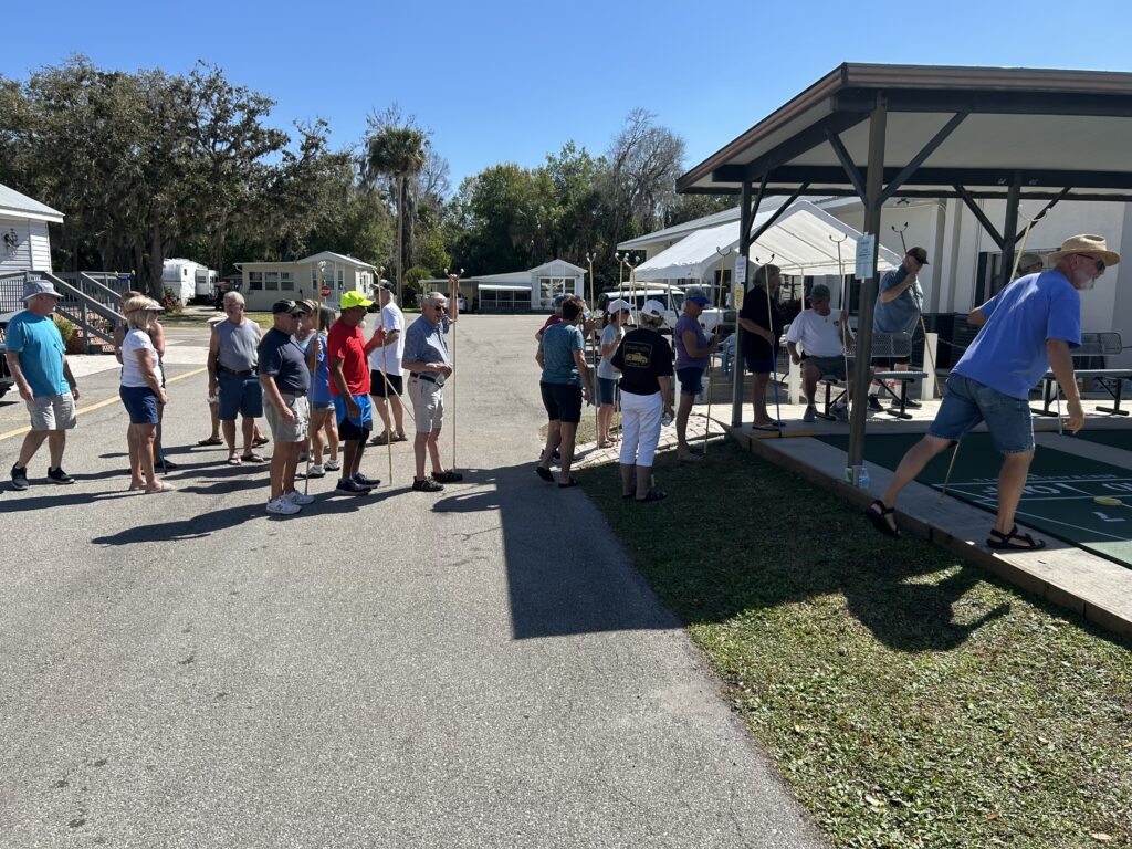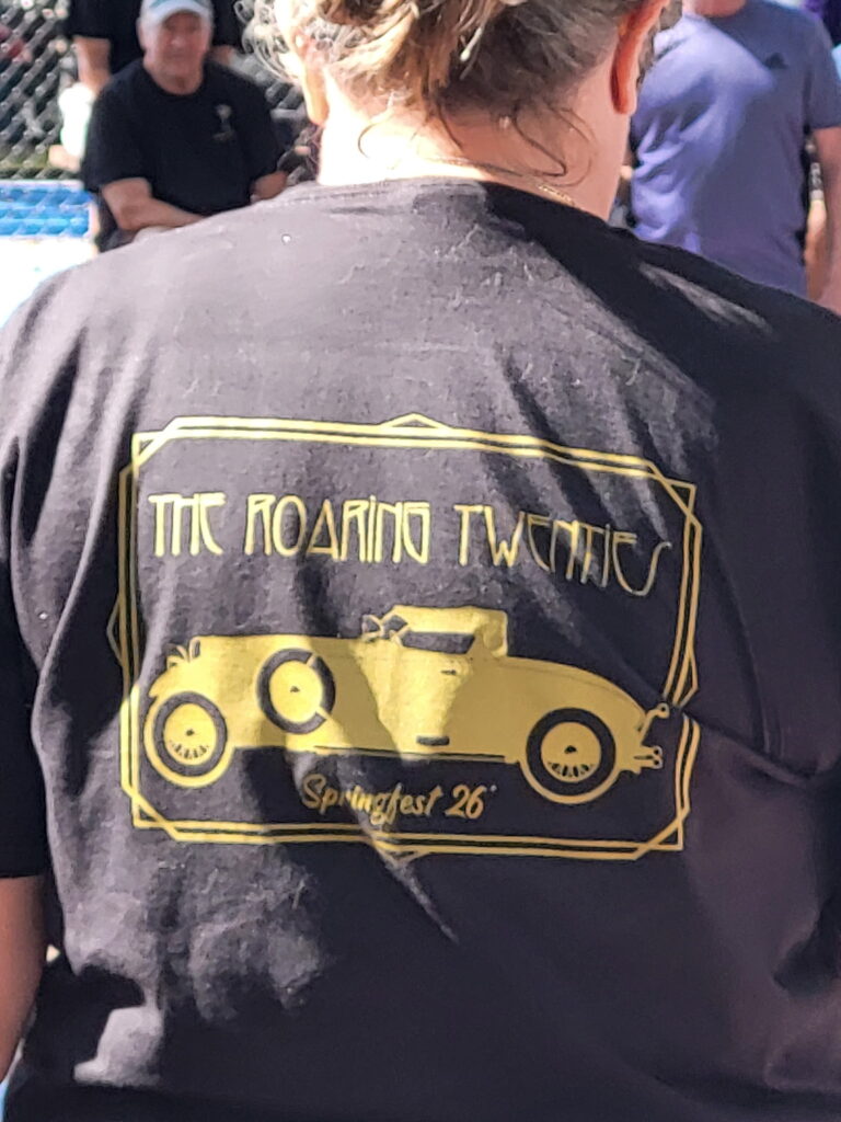 The annual Springfest Crazy Shuffle had 64 participants who tried to score points by going under, around and through obstacles placed on the 5 courts. Each entrant ran the gauntlet twice. The top 4 winners were Larry Johnson, Gracie Biles, Jim Pinner and Darrell Neville.