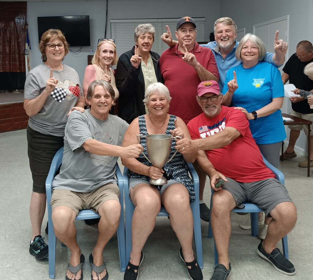 This year’s Ping Pong Tournament resulted in an upset when the perennial winner Doug Martin took second place to Bruce Boor. Bob Gifford finished third of the eight participants.