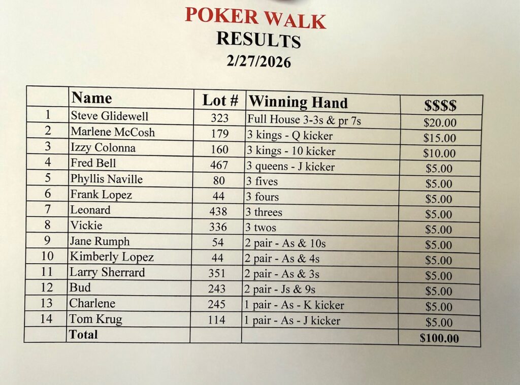 EXTRA! EXTRA! THE POKER WALK RESULTS ARE IN!
